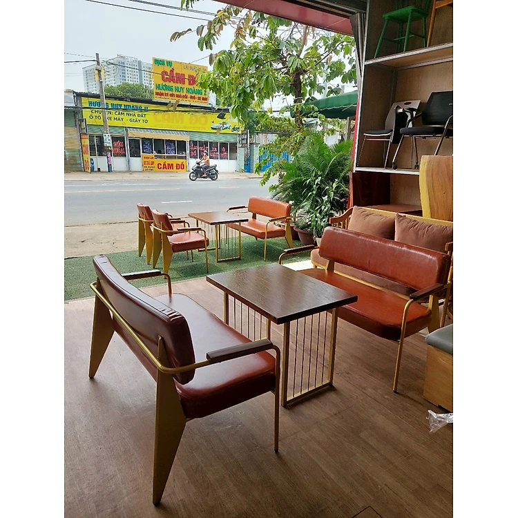 Ghế băng cafe Tundo băng ghế dài 2 ghế đơn và bàn màu cam đất