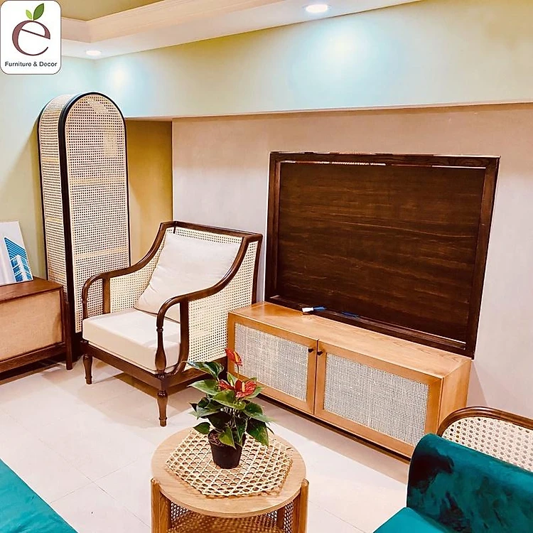 Sofa đơn Club Indochine - Sofa gỗ kết hợp đan mây tự nhiên, bọc vải, nỉ, da, màu tùy chọn. Hàng gia công tỉ mỉ.