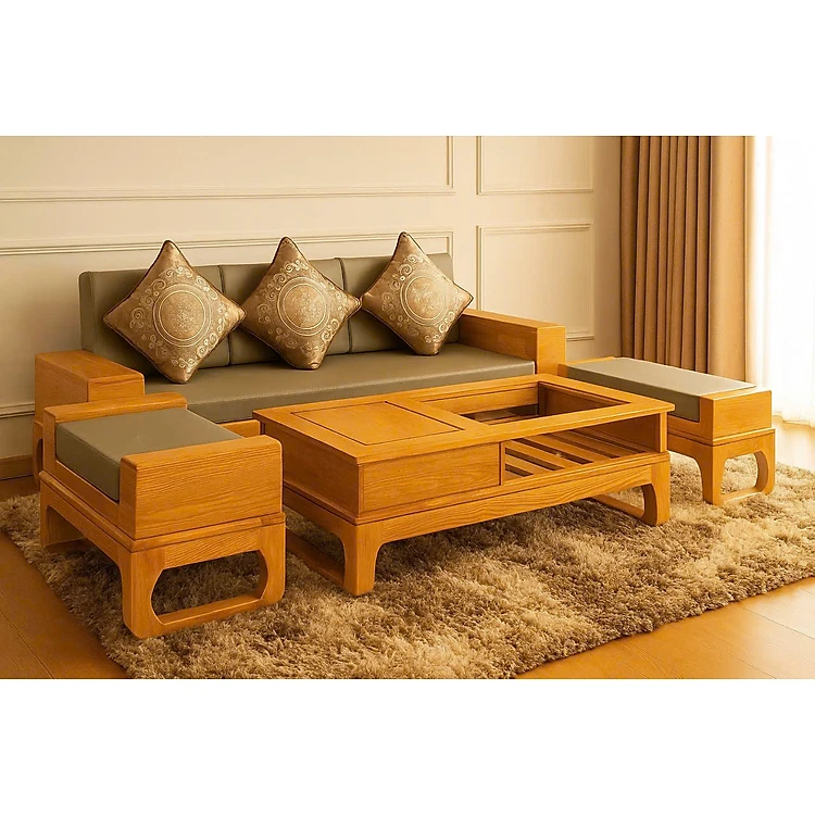 Sofa gỗ sồi nệm Tundo – Sang trọng, êm ái, bền đẹp