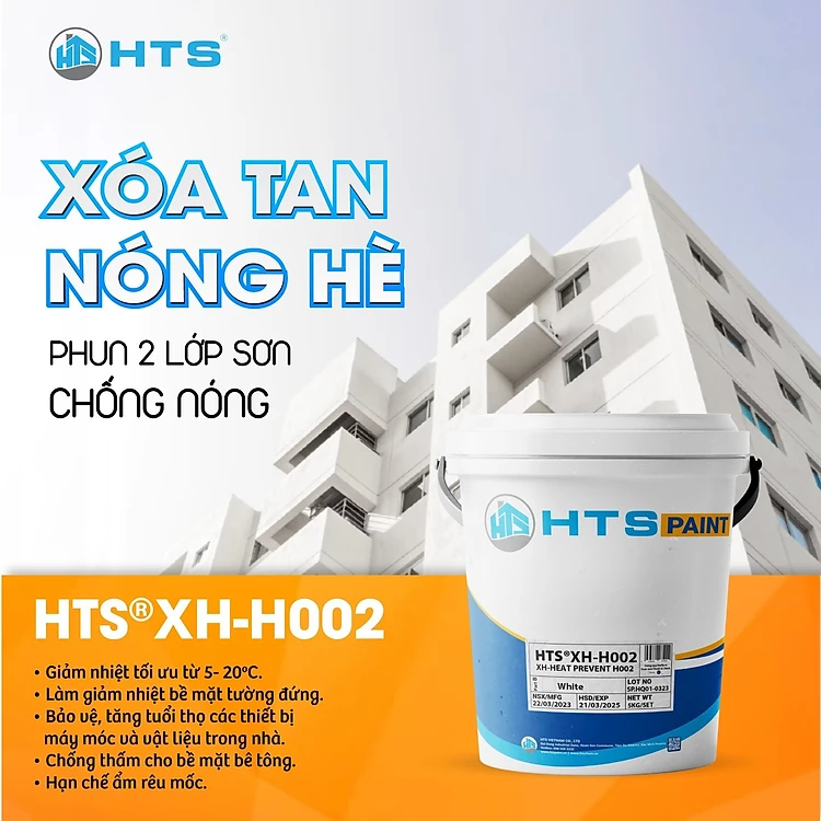 {SIÊU ƯU ĐÃI] Sơn chống nóng tường HTS XH-H002 thùng 5Kg - Giảm nhiệt 5-20 độ C