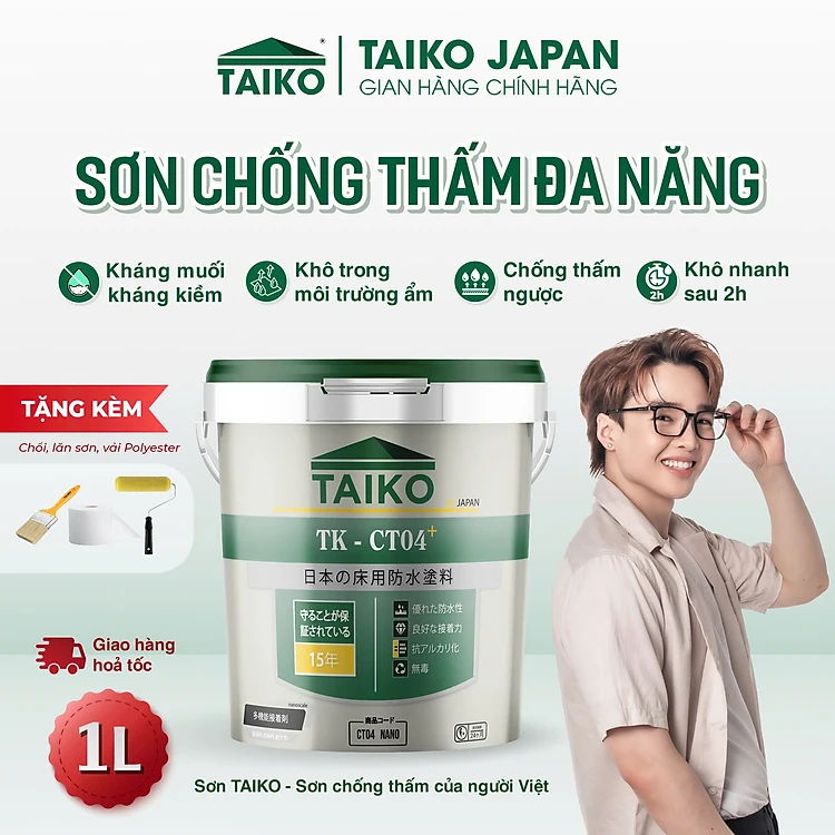 Sơn Chống Thấm Ngược, Môi Trường Ẩm Nhà Vệ Sinh, Bể Cá, Bể Âm TAIKO CT4 - Tặng Kèm Vải Kết Cấu