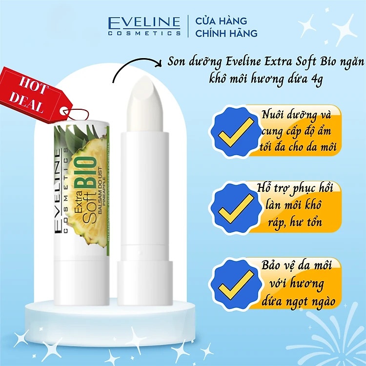 Son dưỡng Eveline Extrasoft Bio ngăn khô môi hương dứa 4g
