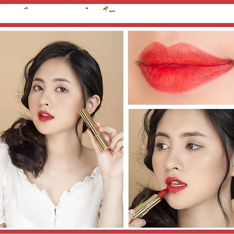 Son Nhung Lì Gold Matte Lipstick 2 in 1 tiện lợi với một đầu son nhung mềm mịn chứa các thành phần sáp dầu tự nhiên cho đôi môi dưỡng ẩm mềm mịn kết hợp cùng công thức Son Nhung Lì chuyển giao công nghệ thế hệ mới từ Mỹ và Nhật Bản cho khả năng giữ màu siêu đỉnh lên đến 8 giờ. Đầu son dưỡng với thành phần Bơ Shea và Bơ Cacao siêu giữ ẩm đem đến đôi môi mềm mại, mướt mịn, căng mọng.