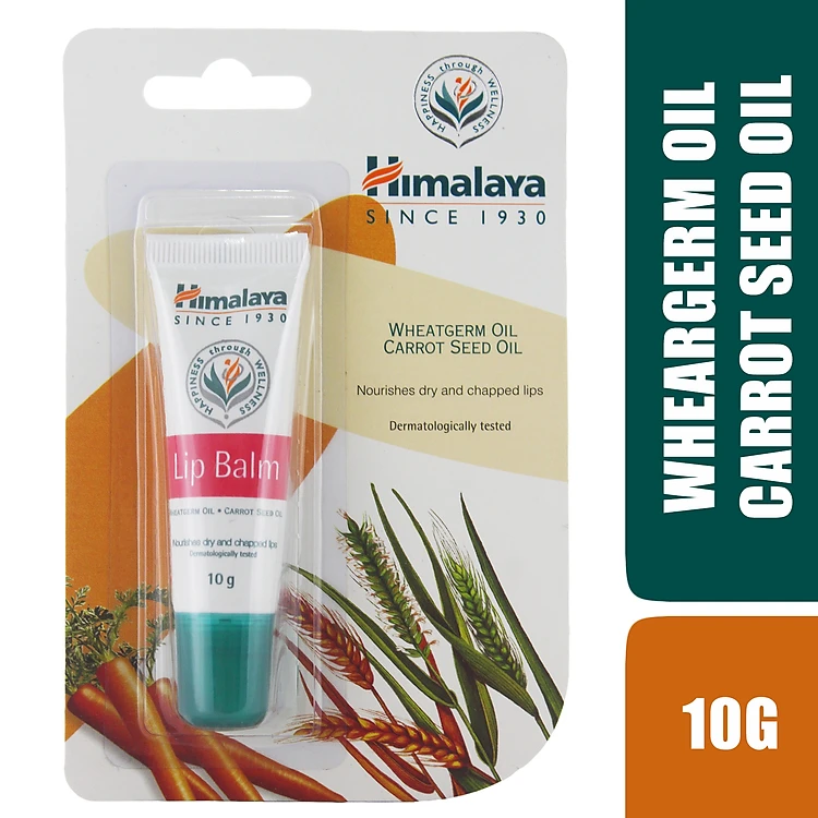 - Son Dưỡng Môi Chiết Xuất Cà Rốt Và Mầm Lúa Mạch Himalaya Herbals (10g) giàu dưỡng chất với Dầu Hạt Cà Rốt và Dầu Mầm Lúa Mạch giàu nguồn Vitamin E thẩm thấu, nuôi dưỡng cho đôi môi căng mọng.