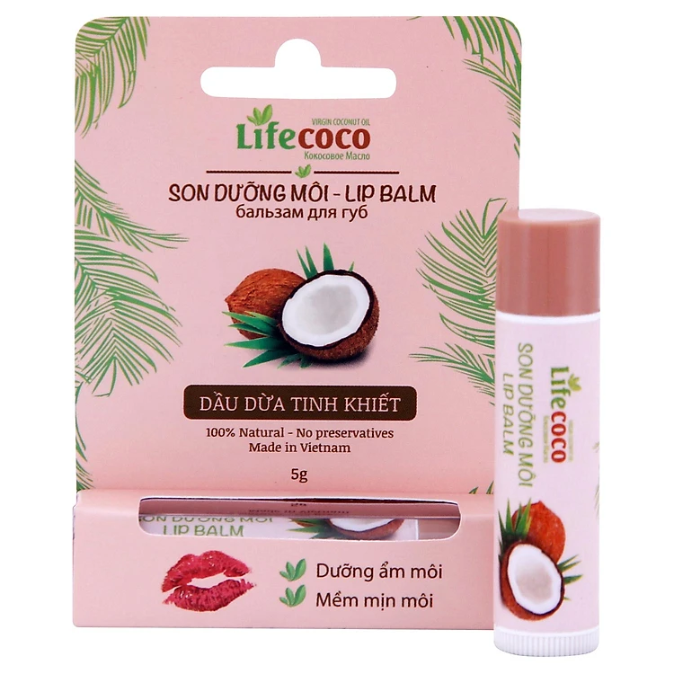 Son thuộc dòng dưỡng tự nhiên không màu, không mùi, được tạo nên từ dầu dừa nguyên chất Lifecoco được ép 100% từ cơm dừa tươi với công nghệ ép hiện đại, kết hợp cùng sáp ong, nước cất.