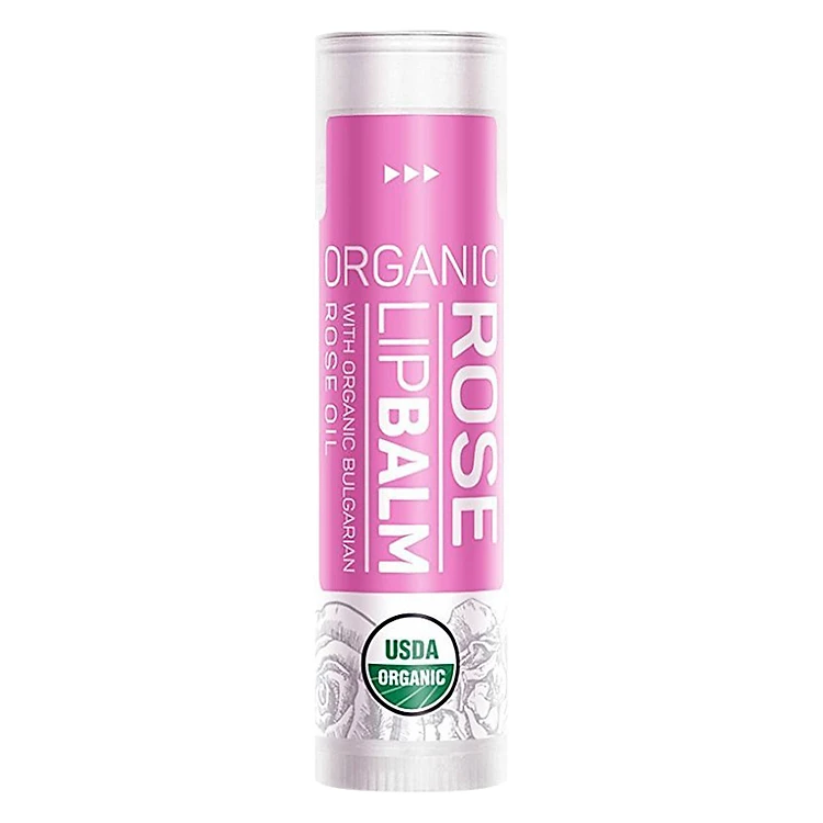 - Organic Rose Lip Balm Alteya Organics chứa tinh dầu hoa hồng Bulagaria hữu cơ và bơ thực vật, làm mềm môi và cải thiện bề mặt da môi.