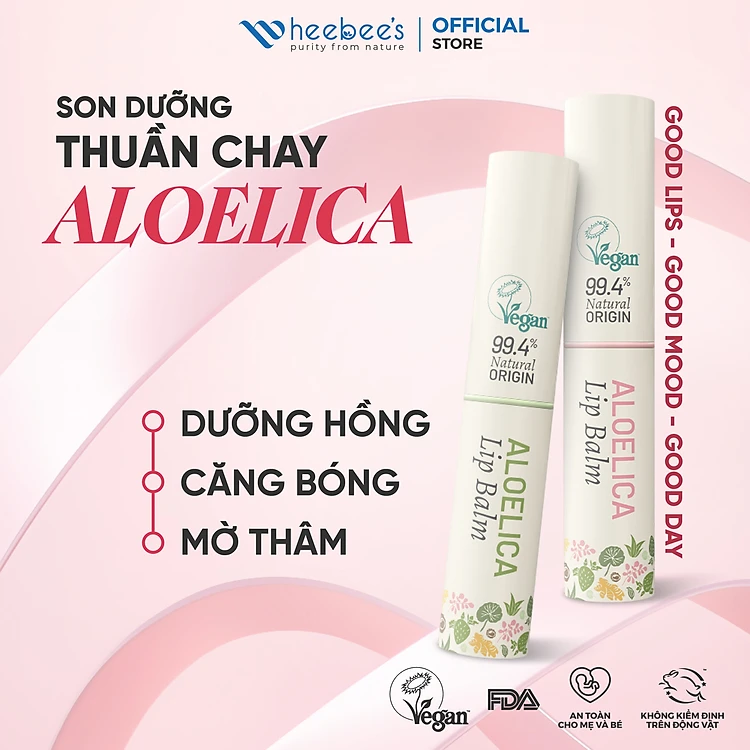Son Dưỡng Thuần Chay Có Màu 3in1 Nha Đam Cam Thảo Heebee’s AloeLica Lip Balm Ủ Dưỡng Môi, Căng Bóng, Sáng Hồng, Mờ Thâm 3.5g