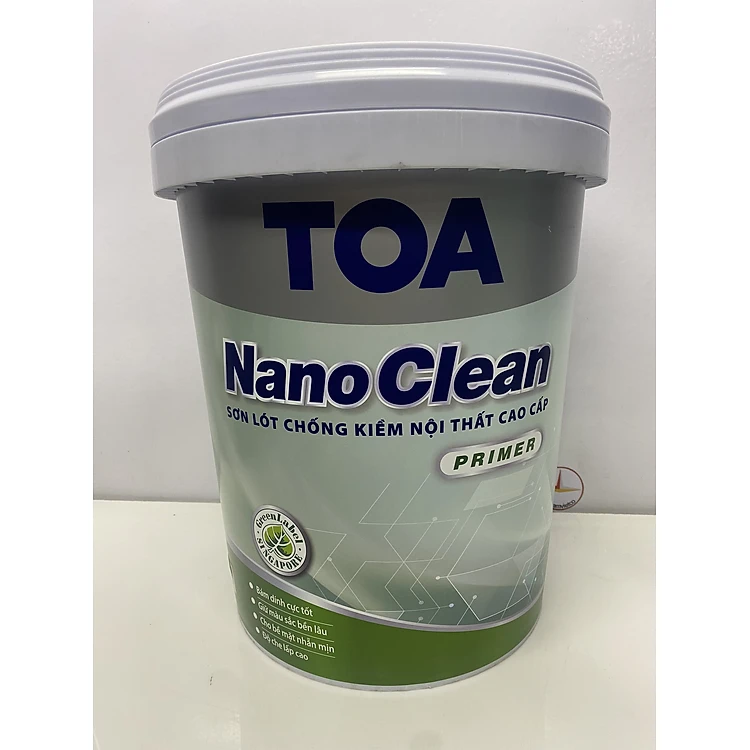 Sơn lót chống kiềm nội thất cao cấp TOA NanoClean Primer là loại sơn lót đặc biệt, được sản xuất từ nhựa styrene acrylic; không sử dụng chì trong công thức, với những tính năng: độ bám dính tuyệt vời, không bong tróc, chống kiềm hóa, tạo độ láng mịn và giữ màu sắc bền lâu cho lớp sơn phủ.