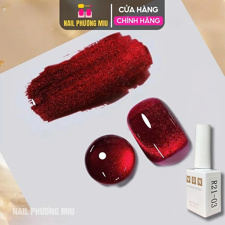 Sơn Mắt Mèo Đỏ VENDEENI R21-03 Chai 15ml Làm Nail Siêu Đậm Mướt, Sơn Gel Mắt Mèo Đỏ Nhũ Hạt Siêu Mịn