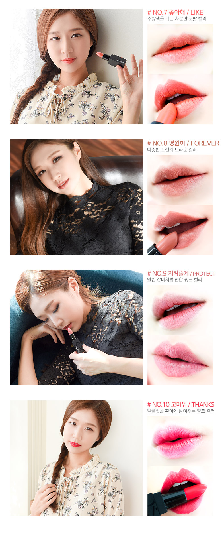 Son có mùi thơm ngọt dịu và dễ chịu. Cho dù là có ghét nghe mùi son vẫn thấy ưng em này vì mùi hương đáng yêu như kẹo vậy. Chất son mướt, dễ lướt trên môi và không quá dính bột, đem lại lớp finish lì hẳn sau khi thoa, khô nhanh, cảm giác trên môi thoải mái và không hề nặng nề.