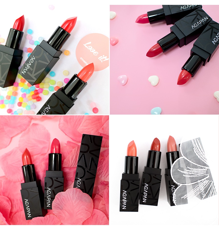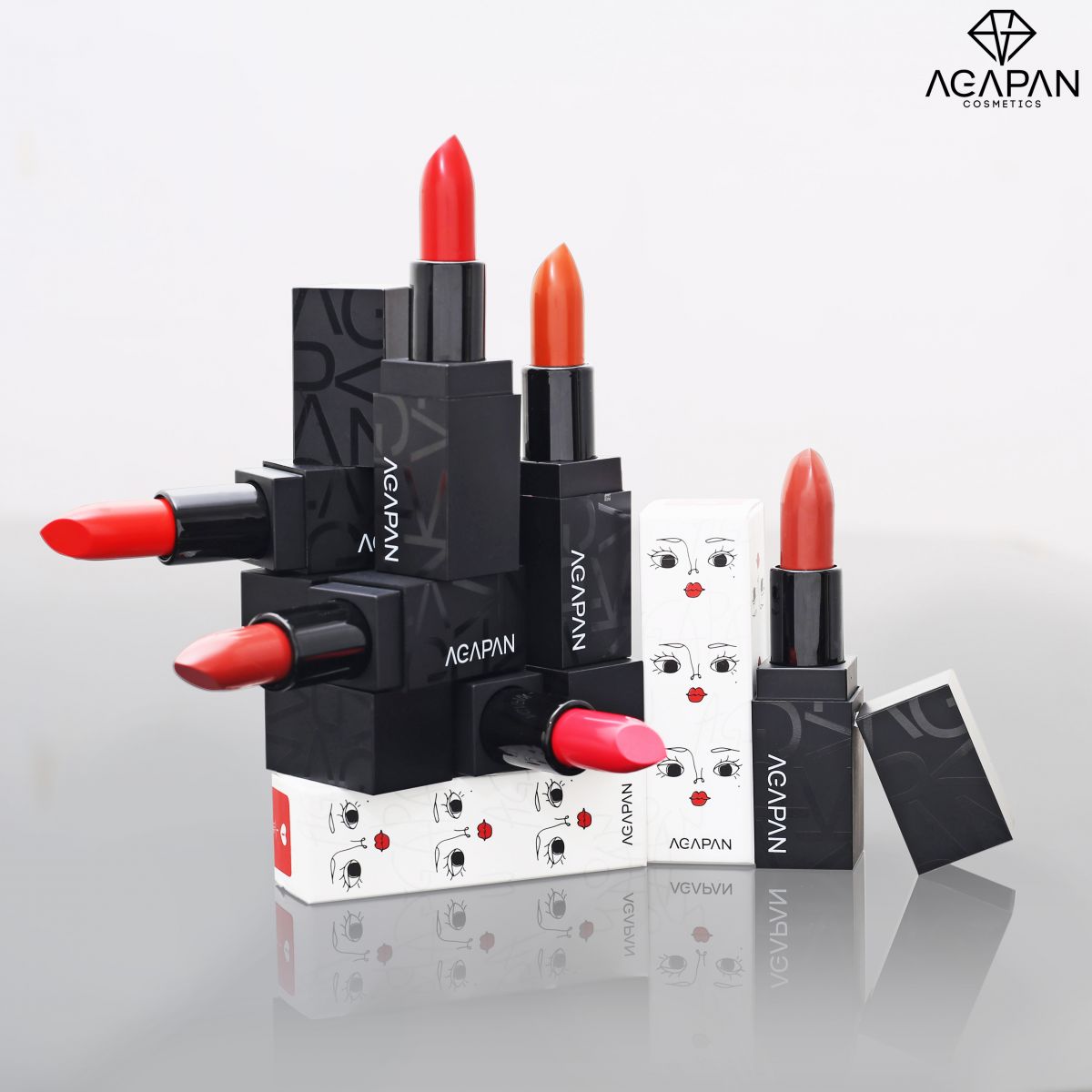 AGAPAN Pitapat Matte Lipstick rất biết theo xu hướng khi bảng màu son hoàn hảo với những gam màu siêu đẹp tôn da và đang rất thời thượng, từ tông hồng, đỏ đến gam nude đều rất chuẩn. Chất son Agapan thỏi lì nhưng lên môi trơn tru mềm mịn, không hề bị bột hay vón cục. Khả năng lên màu cũng rất chuẩn với những bạn môi tối màu luôn , son có độ dưỡng khiến môi không bị khô nhưng không hề làm bóng môi. Với thiết kế vuông vức không cầu lì hoa mỹ, đơn giản với tông đen chủ đạo hoàn toàn hợp với những bạn yêu sự đơn giản tinh tế.