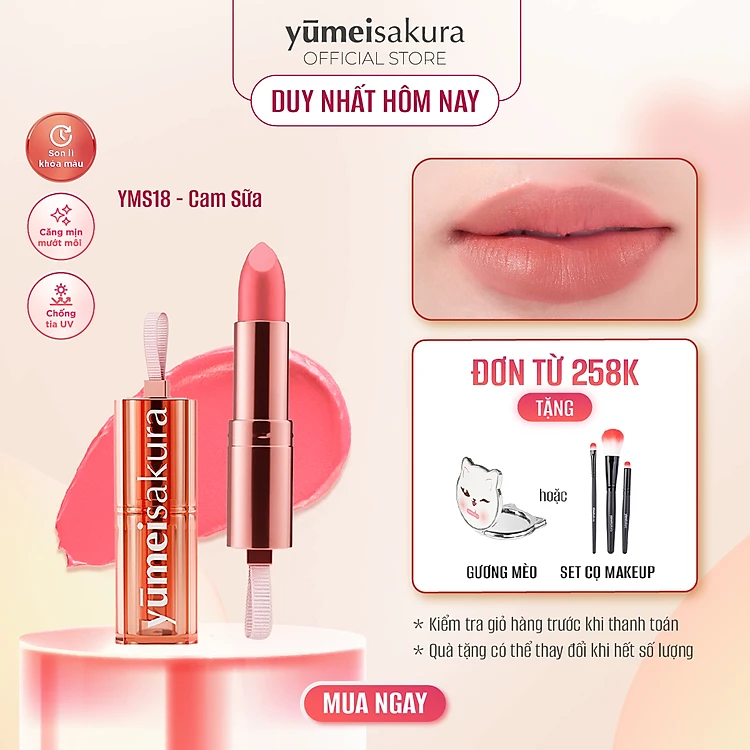 Son Thỏi Màu Cam Sữa Lì Mịn Siêu Dưỡng Yumeisakura Chotto Matte Milky Orange Lipstick YMS18 3.5g