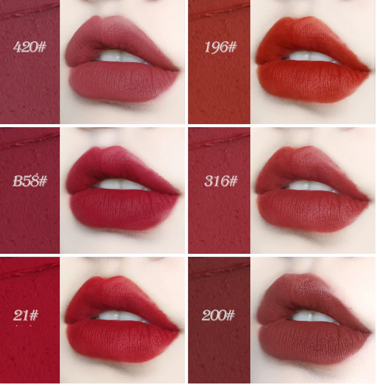 Chất son lì mịn, độ che phủ tốt. Chỉ cần bôi một lớp son duy nhất sắc môi nàng cũng đã vô cùng tươi thắm.