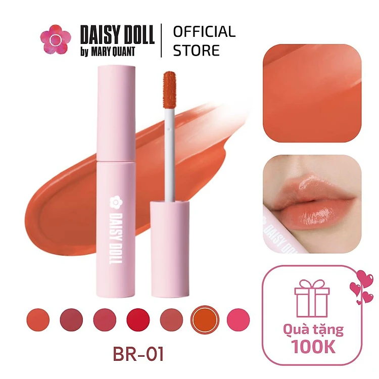 Son Tint Dạng Kem Bóng Daisy Doll Nhật Bản Cho Đôi Môi Mọng Nước, Căng Mướt BR-01 Orange Brown 5g