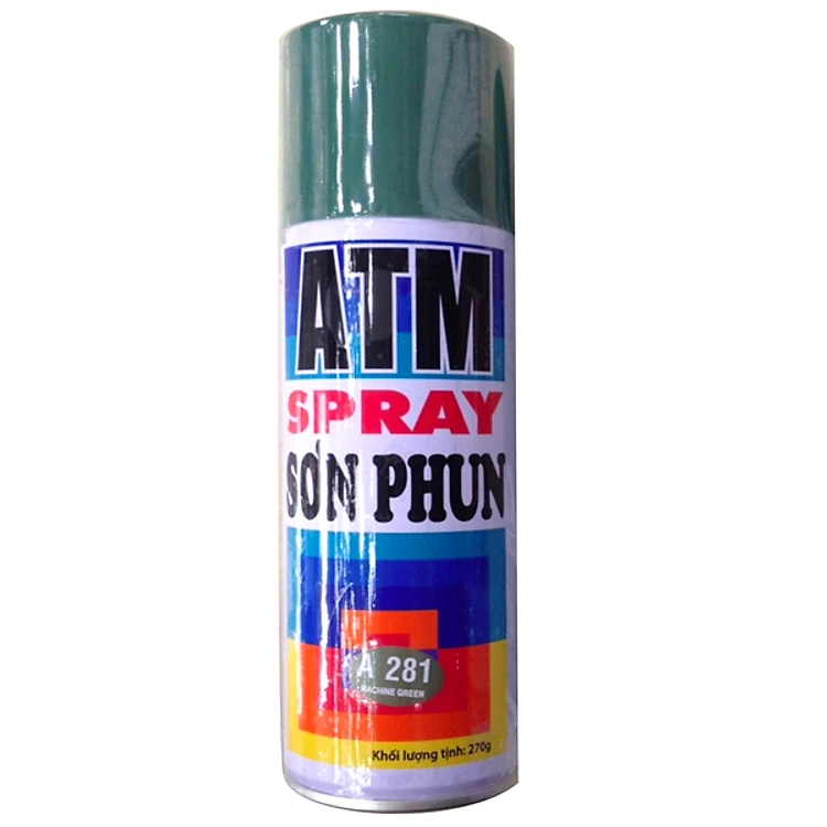 - Sơn Xịt ATM A281 ( Màu Xanh Rêu ) với đặc tính kỹ thuật cao , thích hợp với mọi điều kiện thời tiết đặc biệt là vùng khí hậu nhiệt đới. Trong điều kiện sử dụng đúng theo hướng dẫn sẽ cho lớp sơn có độ bám dính tốt, độ bóng cao, giữ được màu sắc bền đẹp trong nhiều năm.