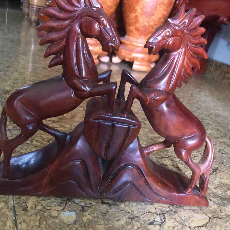 SONG MÃ TỨC LÀ 2 CON NGỰA GỖ GÕ ĐỂ BÀN TRANG TRÍ N35cmxC30xS8cm