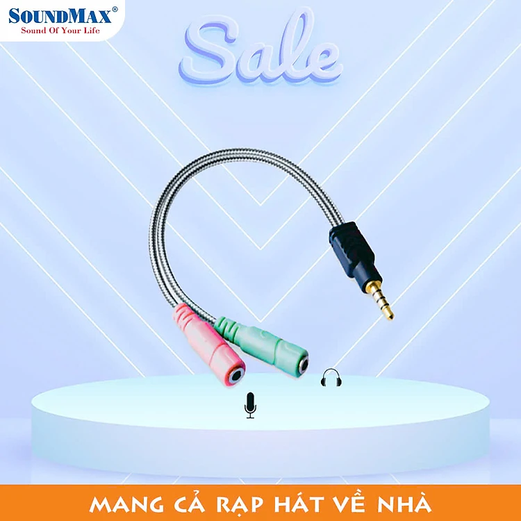 SoundMax Jack Gộp Mic Và Audio Đầu 3.5mm | Audio Mic Splitter | Phụ Kiện Nghe Nhạc Cáp 3.5mm Ra 2 Đầu Audio + Micro | Chất Lượng Âm Thanh Tuyệt Vời - Hàng Chính Hãng Bảo Hành 12 Tháng