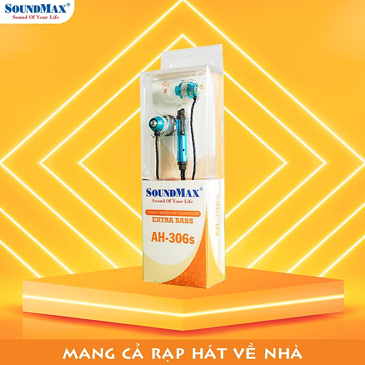 SoundMax Tai Nghe Nhét Tai AH-306s | Inear Headphone SoundMax AH306S | Tăng Cường Bass, Thiết Kế In-Ear, 2 Củ Tai Nhỏ, Đệm Mút Silicon, Jack Cắm 3.5mm, Dây Cáp Bọc Dù Chắc Chắn, Bảo Hành 12 Tháng - Hàng Chính Hãng