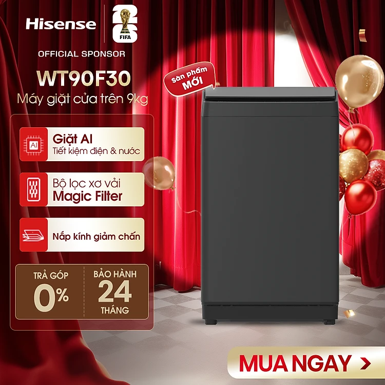 |SP MỚI 2025| Máy giặt Hisense 9kg WT90F30 Giặt AI thông minh, Bảo hành 2 năm, Giao hàng toàn quốc - HÀNG CHÍNH HÃNG