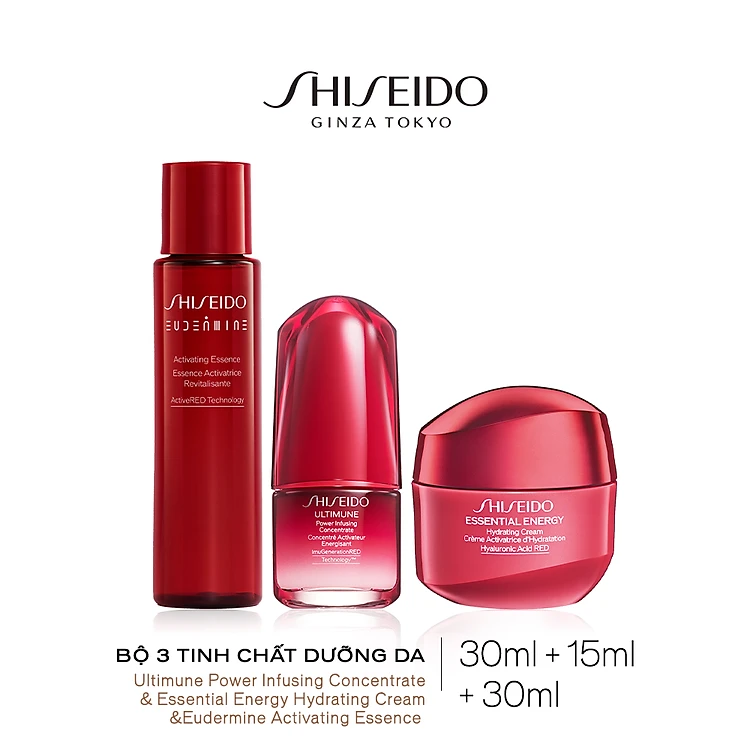 [Special Set] Bộ 3 Tinh chất dưỡng da Shiseido Ultimune Power Infusing Concentrate 15ml, Kem dưỡng da Shiseido Essential Energy Hydrating Cream 30ml và Nước thần đỏ Shiseido Eudermine Activating Essence LS 30ml