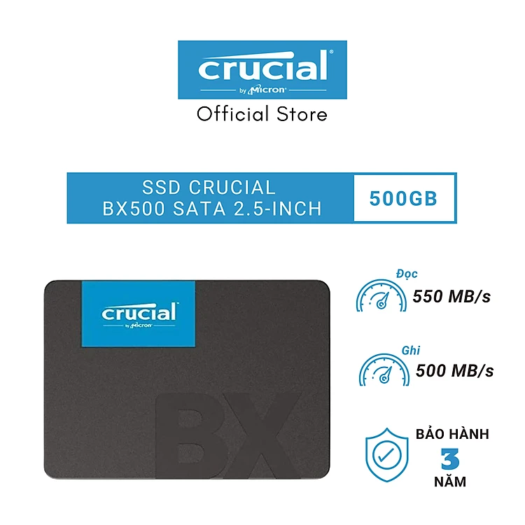 Hiệu suất siêu cao – Tuổi thọ lâu dài Ổ cứng SSD Crucial BX500 3D NAND Sata III với công nghệ tiên tiến bậc nhất giúp tăng tốc độ, độ bền, và hiệu năng tổng thể hệ thống của bạn. Máy tính của bạn sẽ khởi động và load các chương trình cực nặng chỉ trong vài giây khi được trang bị công nghệ 3D flash NAND mới nhất với sự thành công đã được chứng minh của những dòng SSD BX-series trước đó. Ổ cứng SSD Crucial BX500 3D NAND Sata III không chỉ làm tăng hiệu năng hệ thống mà còn giúp bạn lưu trữ tất cả mọi dữ liệu quan trọng. Micron – Chất lượng bậc nhất thế giới | ![]() |