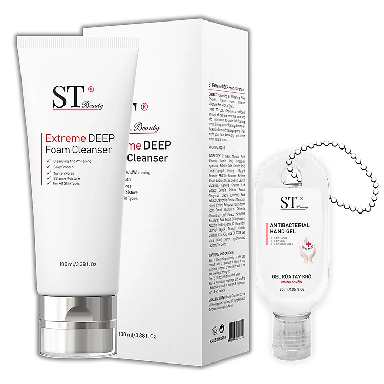 ST Beauty - Sữa Rửa Mặt: Làm Sạch Da Chuyên Sâu & Thông Thoáng Lỗ Chân Lông – Trắng Đều Màu & Cân Bằng Độ Ẩm cho Da - ST Beauty Extreme DEEP Foam Cleanse – Made in Korea - Tặng 1 Gel Rửa Tay Khô Móc Khóa 30ml