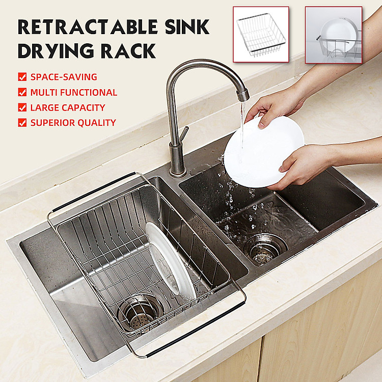 Retractable design for different sizes of sinks, can be placed horizontally/vertically/tilted