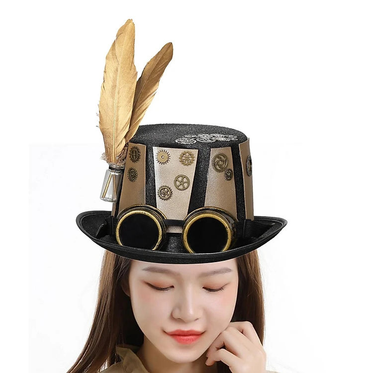 Steam Punk Tall Top Hat Felt Steampunk Hat for Cosplay Costume Halloween Men