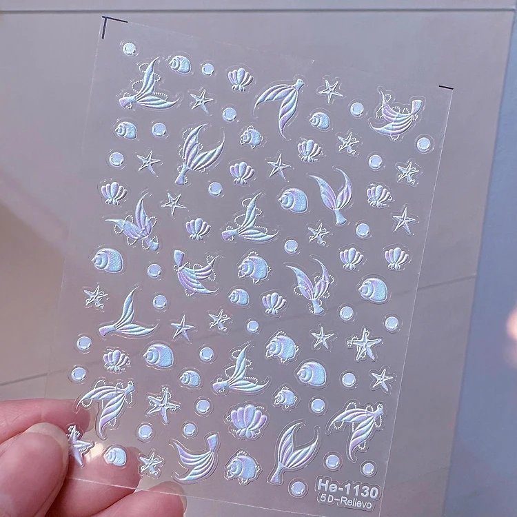 Sticker 5D Biển Cả Hình Sao Sò Ốc Biển Cá Heo Nhiều Màu Pastel Làm Nail Du Lịch Mùa Hè, Hình Dán Móng Ngọc Trai BLUE SEA Sứa Biển Nổi Mix Kiểu