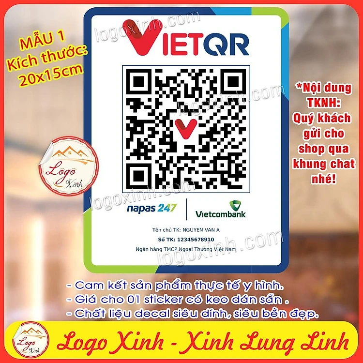 Sticker Decal Dán Mã Quét QR Code Ghi Số Tài Khoản Ngân Hàng, Mã QR Để Chuyển Tiền Cho Quầy Quán, Shop, Cửa Hàng....