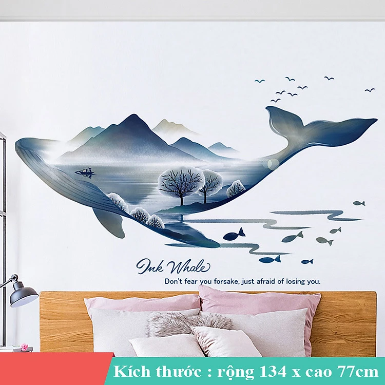 Sticker Giấy Dán Tường Decal Dán tường Tranh Dán Tường Trang Trí Tường Mẫu Cá Voi Nghệ Thuật ZH-1002