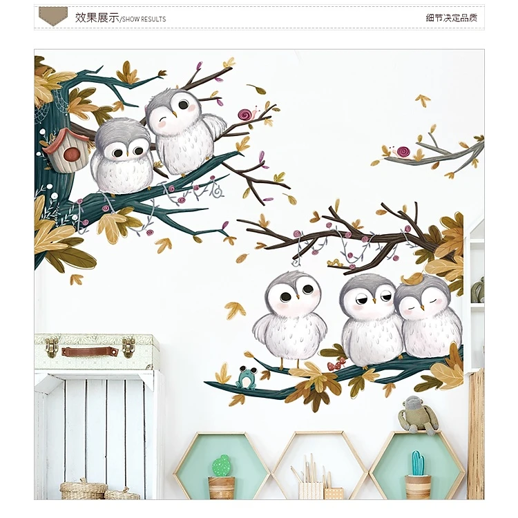 Sticker Giấy Dán Tường Decal Dán tường Tranh Dán Tường Trang Trí Tường Mẫu Gia Đình Nhà Cú ZH98