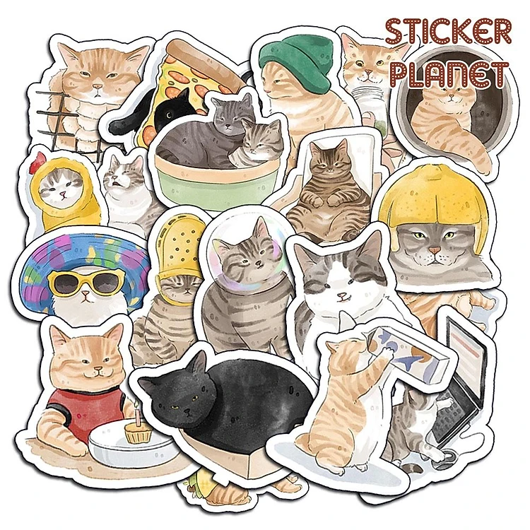 Sticker hình dán mèo meme hài hước vui nhộn dễ thương boss và sen pastel trang trí mũ bảo hiểm Laptop journal sổ tay