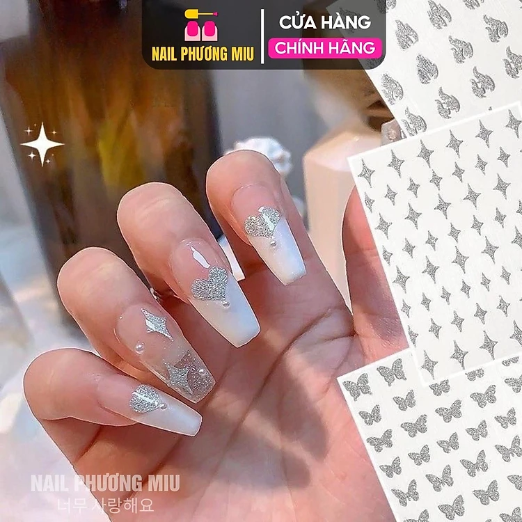 Sticker Nail Nhũ Bạc Flash Kim Tuyến, Nhiều Mẫu Bướm Sao Lung Linh, Làm Nail Siêu Sáng, Tạo Điểm Nhấn, Dễ Sử Dụng