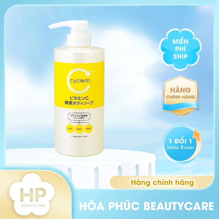 Sữa Tắm Dưỡng Sáng Mịn Da Kumano Cyclear Vitamin C Enzyme (Chai 500 mL)