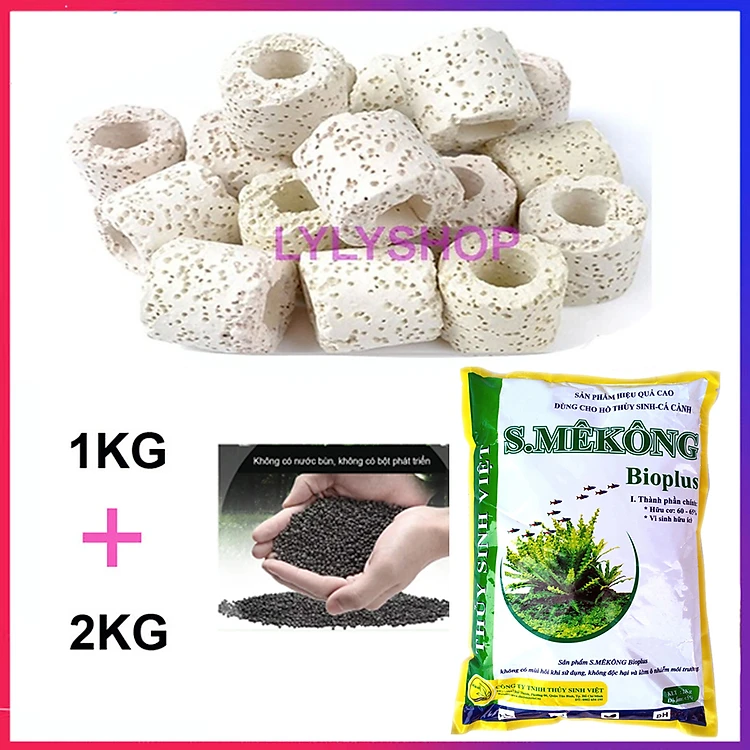 Sứ Lọc Bể Cá túi 1KG + Phân nền SMEKONG 2KG trồng cây thủy sinh hồ cá