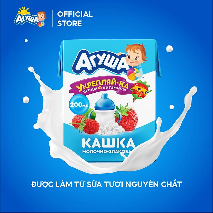 Sữa ăn dặm tăng đề kháng gạo sữa vị dâu tây, dâu đất và táo Agusha 200ml