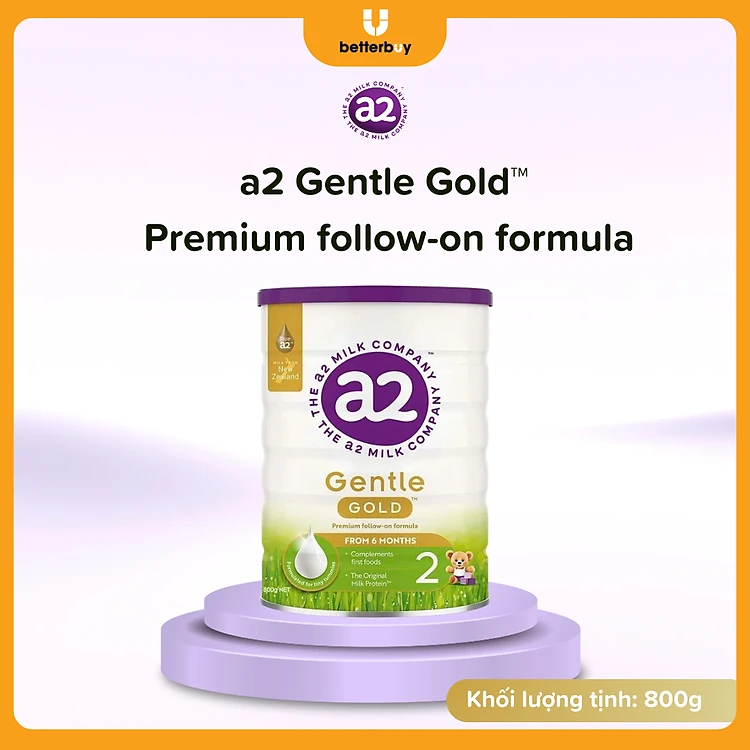 a2 Gentle Gold Premium - Sữa công thức nguyên kem nhập khẩu trực tiếp từ New Zealand, 100% đạm A2 chuyên hỗ trợ tiêu hóa, hấp thu và tăng cân hiệu quả cho trẻ từ 6-12 tháng.