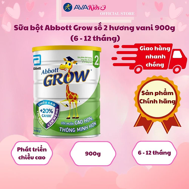 Thương hiệu sữa Abbott Grow đã nghiên cứu và sản xuất các dòng sản phẩm dinh dưỡng phù hợp với từng độ tuổi riêng biệt, trong đó sữa bột Abbott Grow số 2 có công thức được phát triển dựa trên nhu cầu dinh dưỡng của trẻ trong giai đoạn từ 6 - 12 tháng, hương vani thơm ngon, dễ uống.