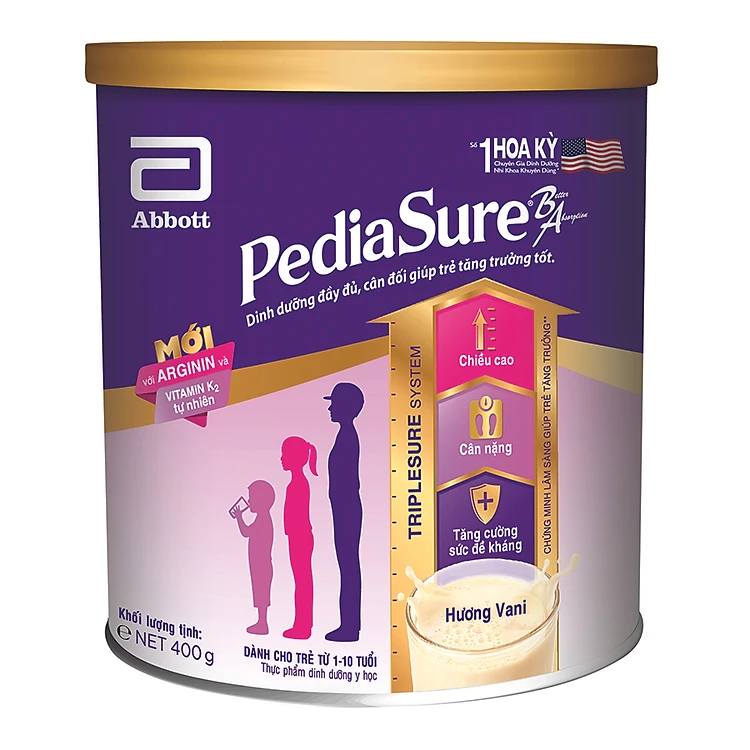 • Sữa bột Pediasure (400g) có chứa 3 nguồn đạm, canxi và Vitamin D giúp cân bằng và duy trì liên tục axit amin thiết yếu để phát triển cơ và xương.