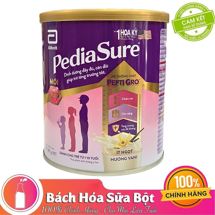 Sữa Bột Abbott Pediasure B/A hương Vani Ít Ngọt Lon 380g