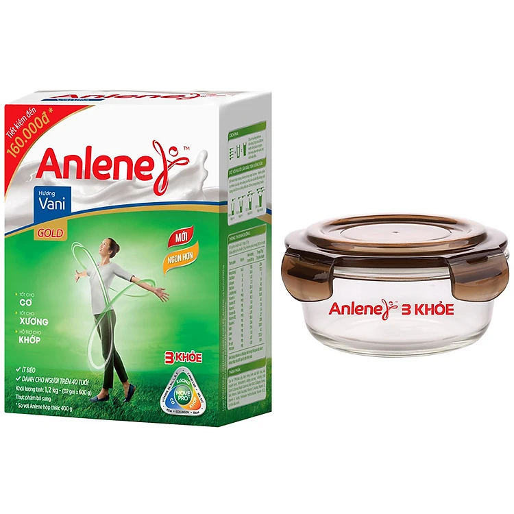 Sữa Bột Anlene Gold Movepro Hương Vanilla (Hộp 1kg2) Tặng 01 Thố Thuỷ Tinh