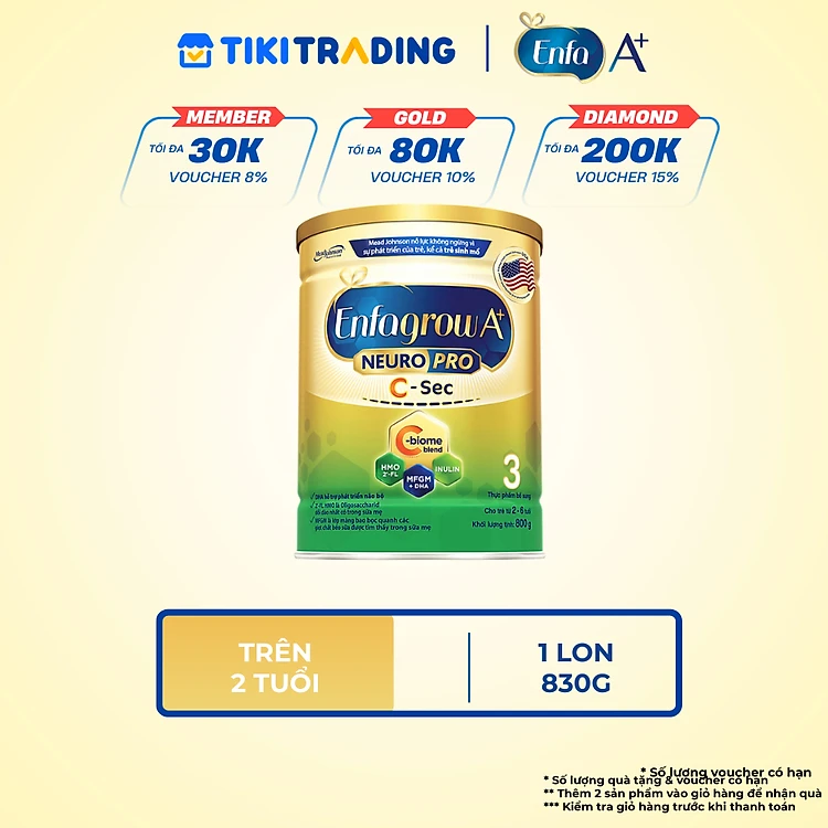 [Cho cả trẻ sinh mổ] Sữa bột Enfagrow A+ NeuroPro 3 C-Sec 800g cho trẻ từ 2-6 tuổi