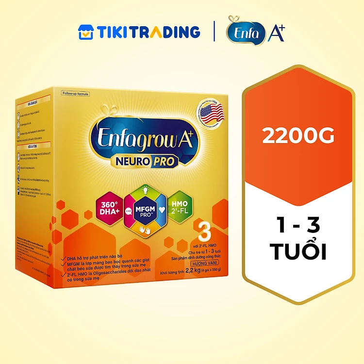 Sữa bột Enfagrow A+ Neuropro 3 2.2kg với DHA giúp phát triển não bộ cho trẻ từ 1-3 tuổi