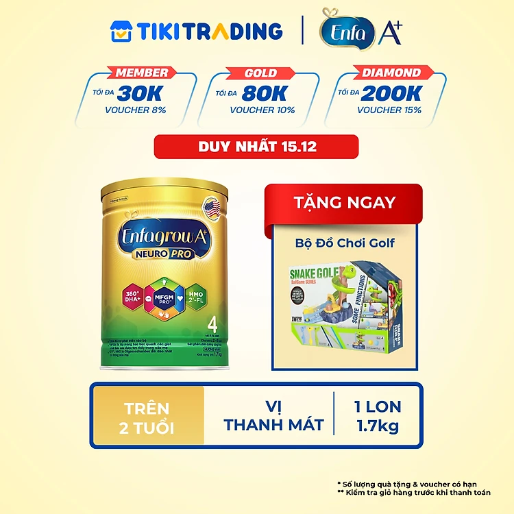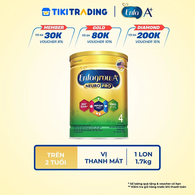 Sữa bột Enfagrow A+ Neuropro 4 1.7kg với DHA giúp phát triển não bộ cho trẻ từ 2–6 tuổi