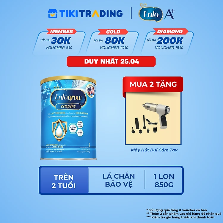 Sữa bột Enfagrow Enspire 3 850g hỗ trợ đề kháng với Lactoferrin dành cho trẻ từ 2-6 tuổi