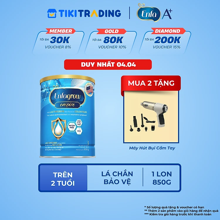Sữa bột Enfagrow Enspire 3 850g hỗ trợ đề kháng với Lactoferrin dành cho trẻ từ 2-6 tuổi