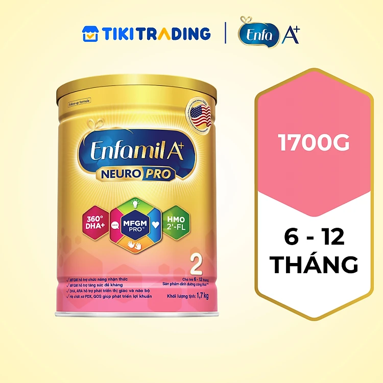 Sữa bột Enfamil A+ Neuropro 2 1.7kg với DHA giúp phát triển não bộ cho trẻ từ 6 –12 tháng tuổi