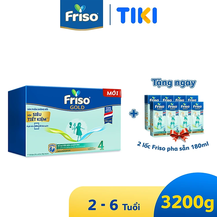 Sữa Bột Frisolac Gold 4 - Giai Đoạn 1 là sản phẩm dinh dưỡng công thức dành cho trẻ từ 2-6 tuổiFrisolac Gold 4 cung cấp đa vi chất dinh dưỡng vitamin A, C, E và các chất khoáng selen, kẽm, 5 loại nucleotit và chất xơ GOS giúp hỗ trợ sức khỏe đường ruột của trẻ, và DHA, AA hỗ trợ phát triển trí não.