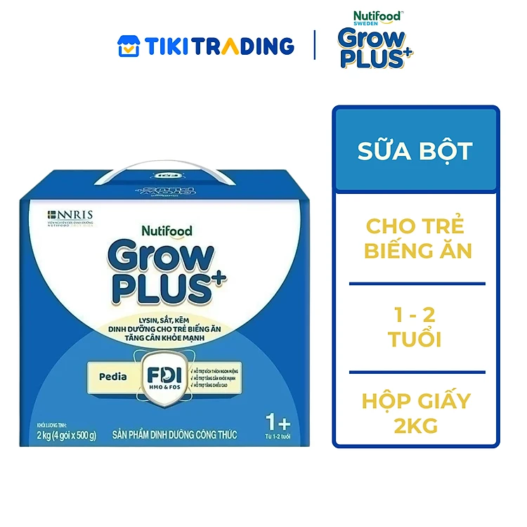 Sữa Bột GrowPLUS+ Biếng Ăn (Xanh) cho trẻ tăng cân khoẻ mạnh 1+ Hộp giấy 2 KG
